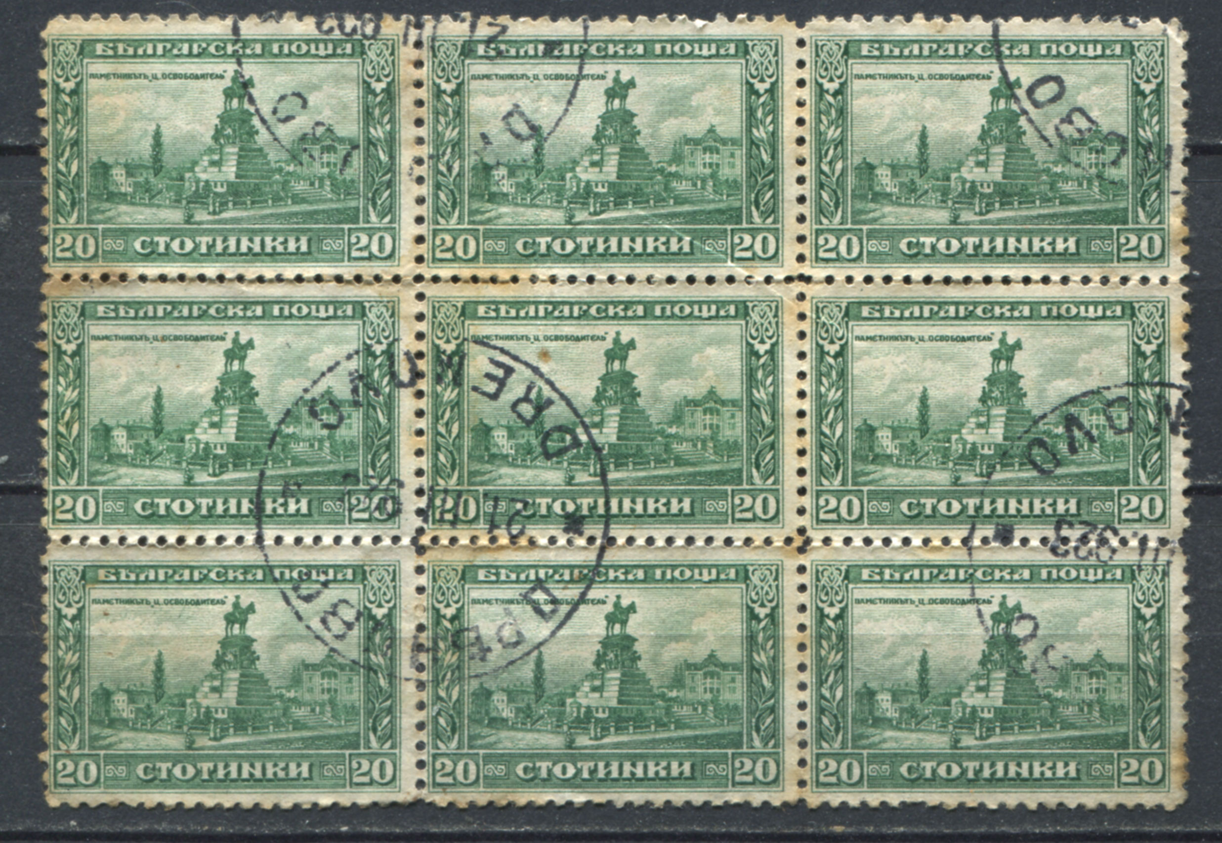 Болгария 1921-1923 гг. • Mi# 157 • 20 s. • годовщина смерти Дж. Д. Буршье • памятник Александру II • блок 9 м. • Used VF