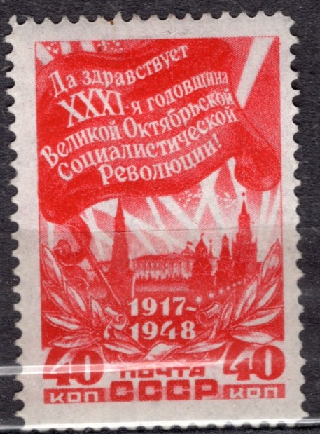 СССР 1948 г. • Сол# 1330 • 31-я годовщина Октябрьской революции • Кремль под знаменами • MNH OG XF