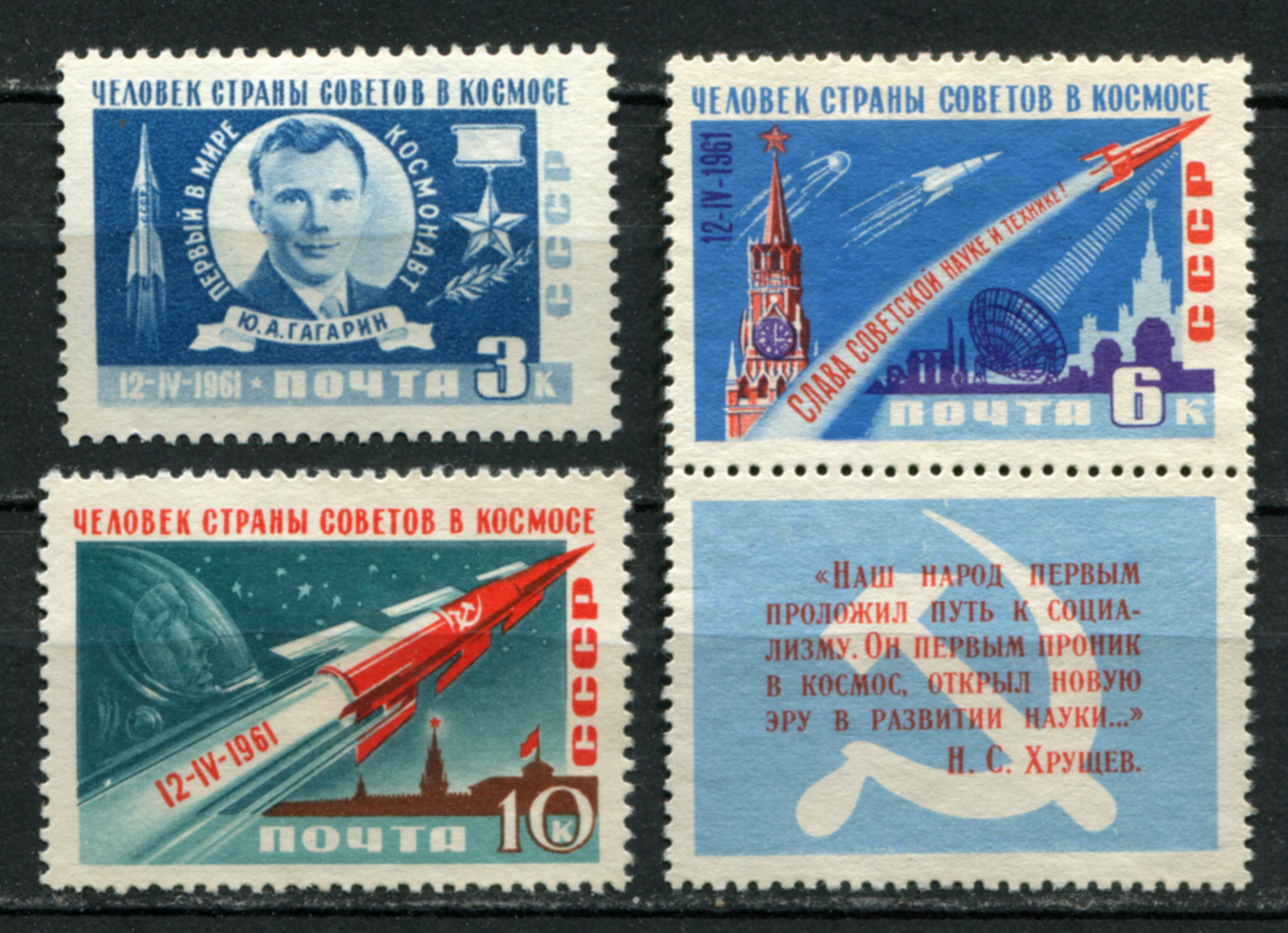 СССР 1961 г. • Сол# 2560-2 • 3 - 6 коп. • Космический полет Ю. Гагарина. • полн. серия • Mint NG VF